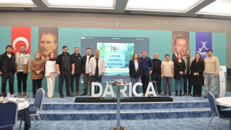Darıca belediyesine ait Darıca Balıkçısı toplantı salonundaki eğitime Gebze Gazeteciler Cemiyeti Başkanı Levent Altun ve Başkan Yardımcısı Sabiha Toprak Kırdemir de katılırken, yönetim kurulu üyesi Mert Gürenç, gazetecilere Drone kullanma eğitimi verdi.